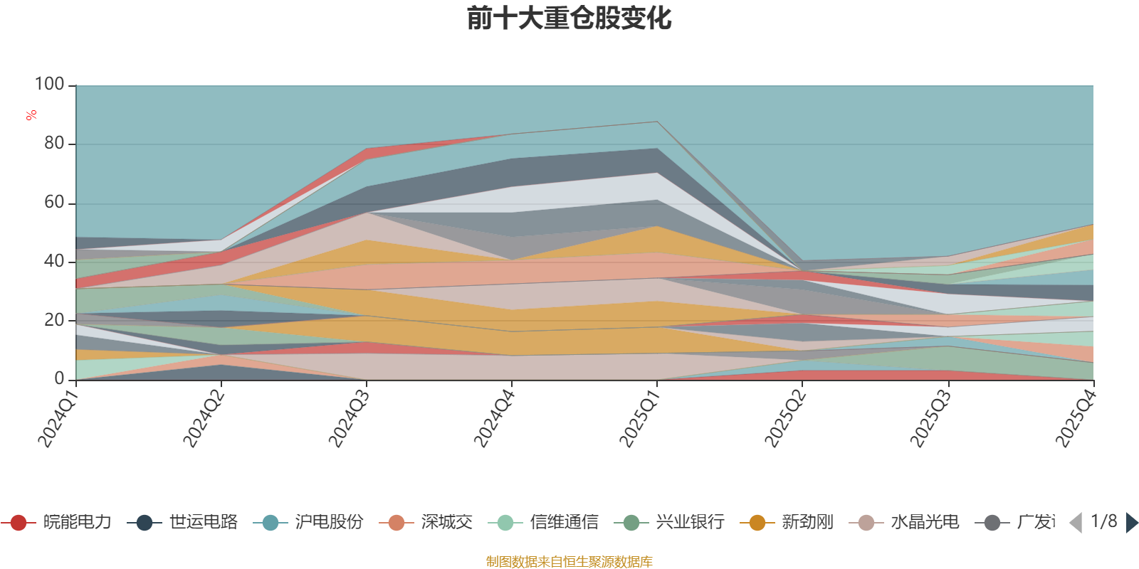 截至2025年四季度末,基金十大重仓股分别是兴业银行、南京银行、建设银行、工商银行、上海银行、中国银行、交通银行、华能国际、光大银行、申能股份。