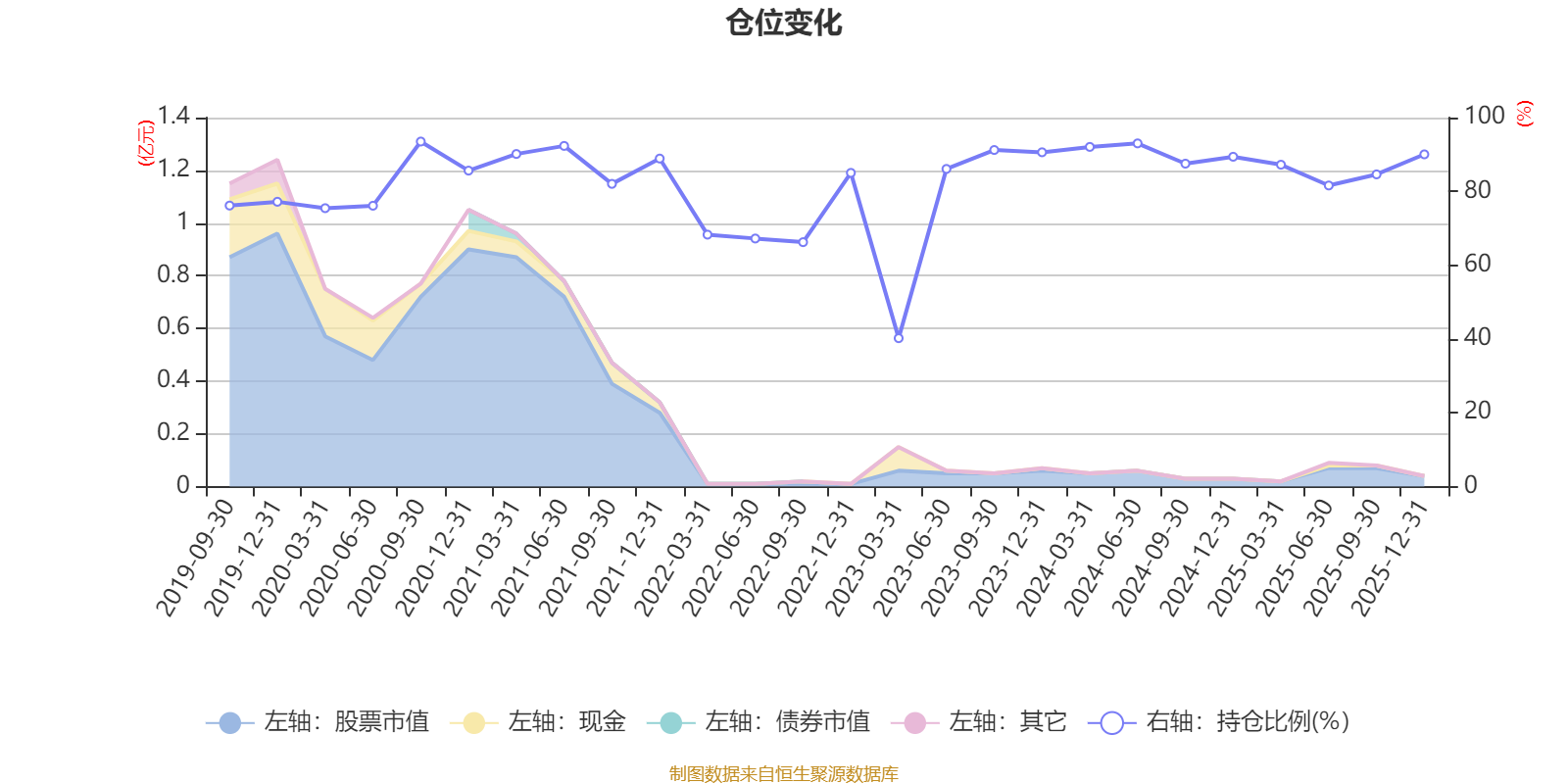 据定期报告数据统计,近三年平均股票仓位为84.47%,同类平均为84.04%。2020年三季度末基金达到93.51%的最高仓位,2023年一季度末最低,为40.21%。