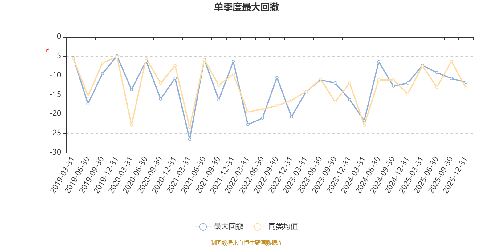 通过所选区间该基金净值增长率分位图,可以观察该基金与同类基金业绩比较情况。图为坐标原点到区间内某时点的净值增长率在同类基金中的分位数。