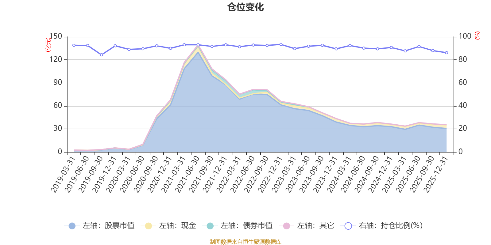 据定期报告数据统计,近三年平均股票仓位为89.98%,同类平均为87.15%。2022年末基金达到93.34%的最高仓位,2019年三季度末最低,为84.3%。