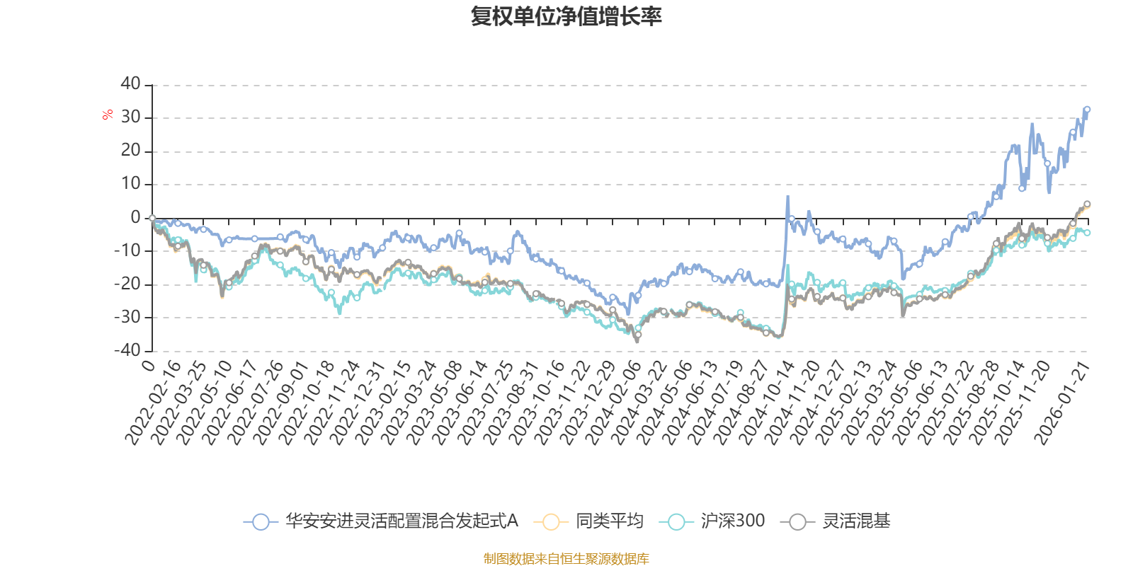 截至1月21日,华安安进灵活配置混合发起式A近三个月复权单位净值增长率为15.00%,位于同类可比基金243/1286;近半年复权单位净值增长率为33.41%,位于同类可比基金369/1286;近一年复权单位净值增长率为43.09%,位于同类可比基金428/1286;近三年复权单位净值增长率为37.74%,位于同类可比基金289/1286。