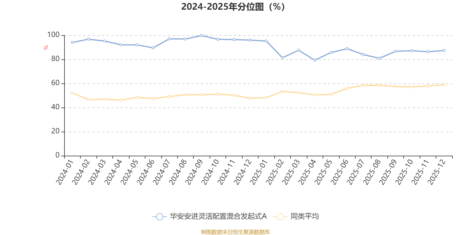 通过所选区间该基金净值增长率分位图,可以观察该基金与同类基金业绩比较情况。图为坐标原点到区间内某时点的净值增长率在同类基金中的分位数。