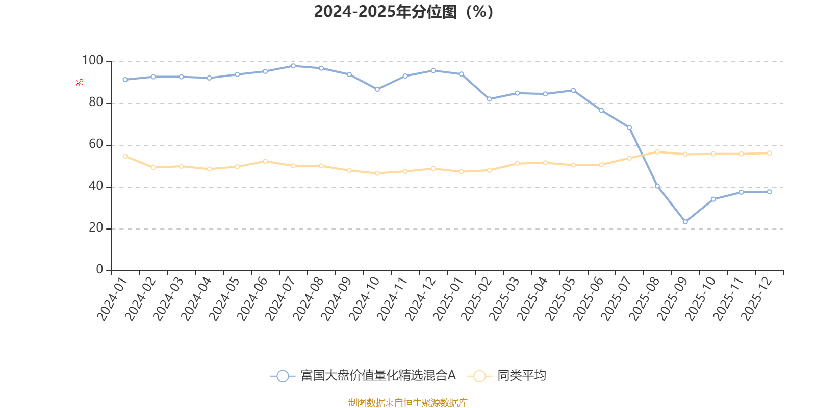 通过所选区间该基金净值增长率分位图,可以观察该基金与同类基金业绩比较情况。图为坐标原点到区间内某时点的净值增长率在同类基金中的分位数。