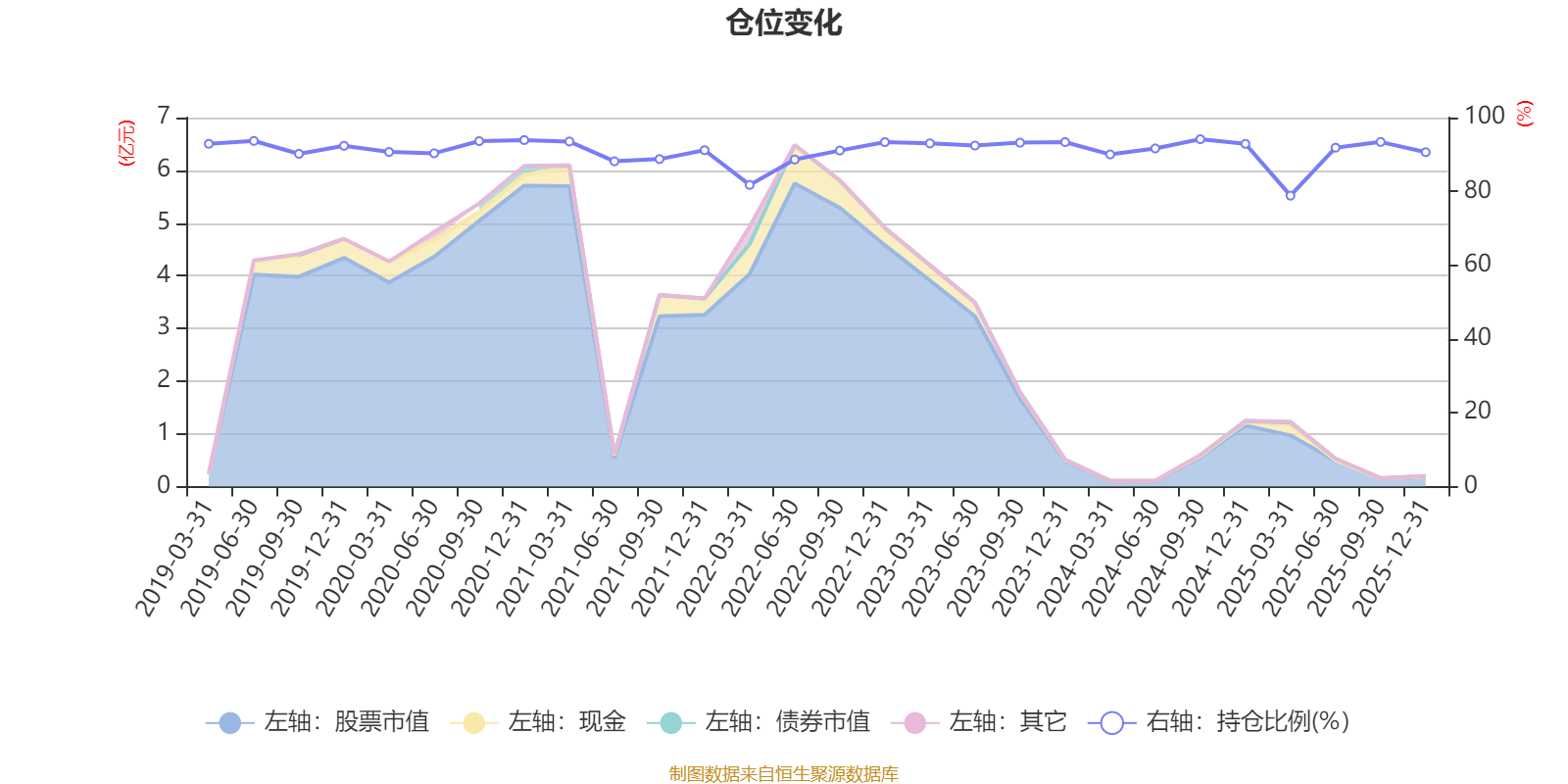 据定期报告数据统计,近三年平均股票仓位为91.28%,同类平均为84.04%。2024年三季度末基金达到94.14%的最高仓位,2025年一季度末最低,为78.84%。