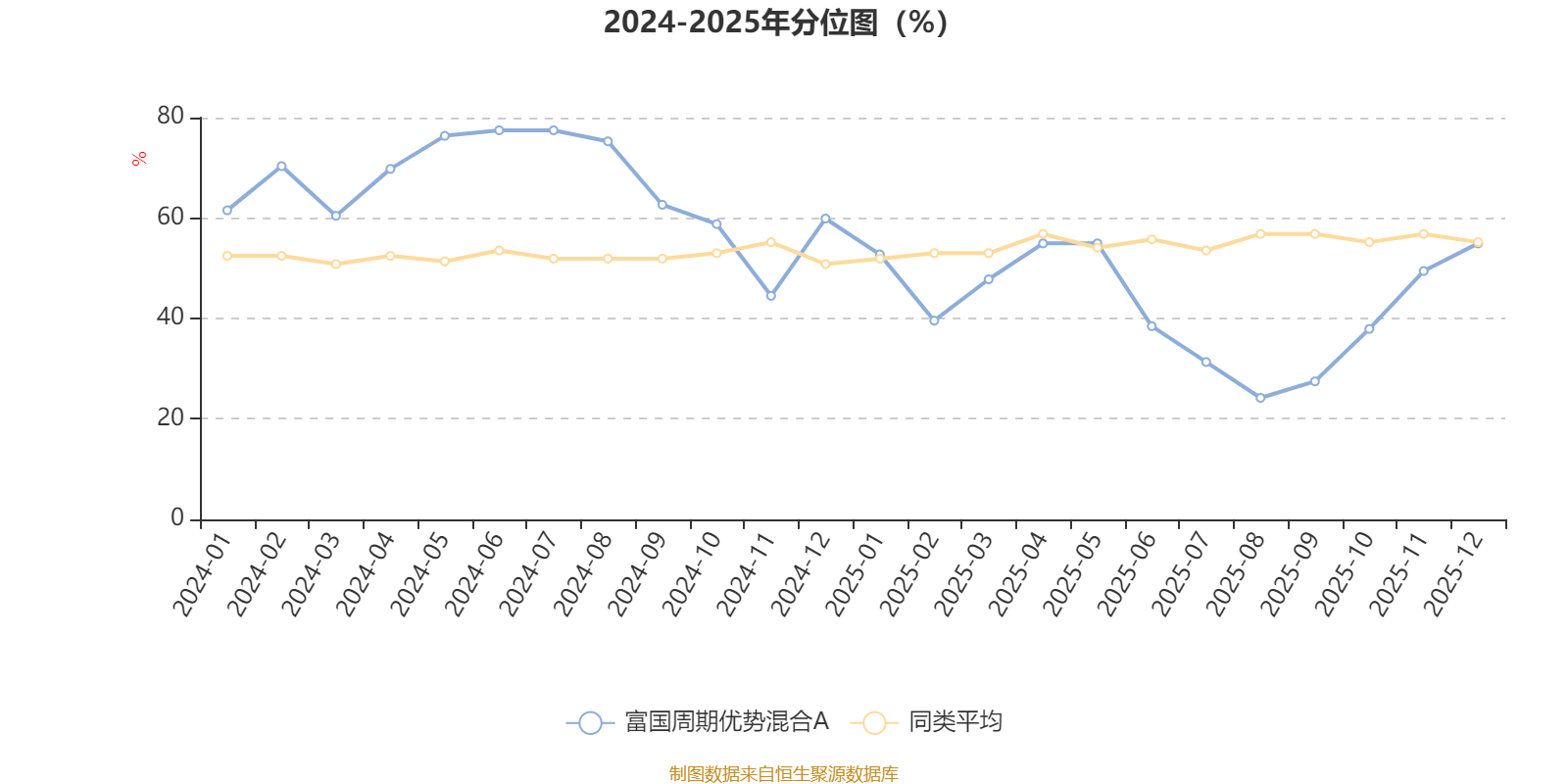 通过所选区间该基金净值增长率分位图,可以观察该基金与同类基金业绩比较情况。图为坐标原点到区间内某时点的净值增长率在同类基金中的分位数。