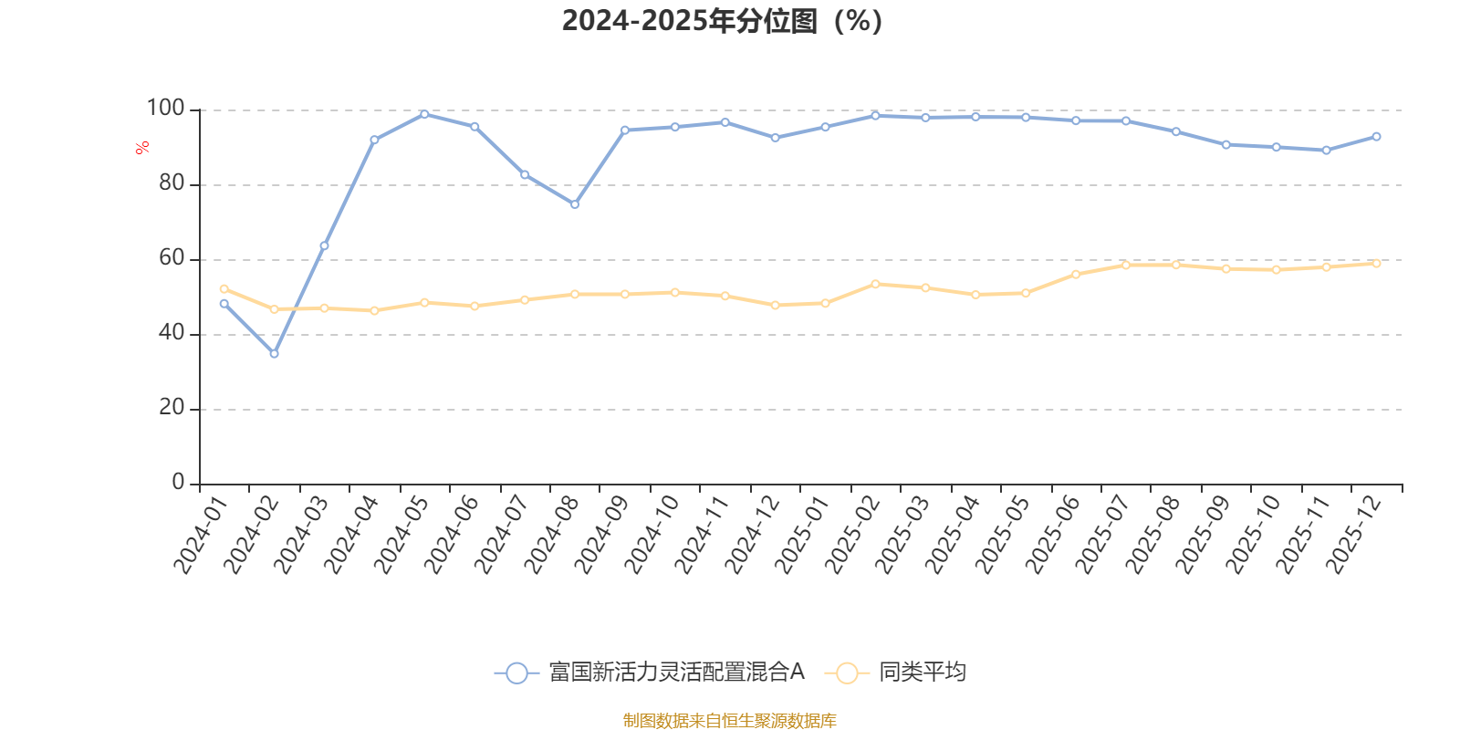 通过所选区间该基金净值增长率分位图,可以观察该基金与同类基金业绩比较情况。图为坐标原点到区间内某时点的净值增长率在同类基金中的分位数。