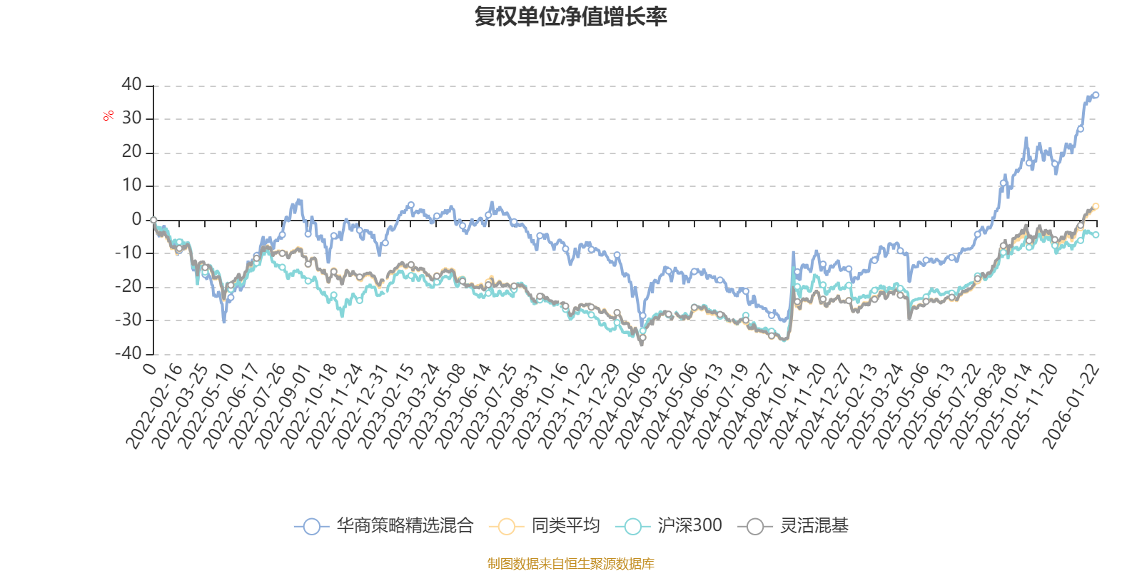 截至1月22日,华商策略精选混合近三个月复权单位净值增长率为16.79%,位于同类可比基金217/1286;近半年复权单位净值增长率为43.33%,位于同类可比基金225/1286;近一年复权单位净值增长率为61.95%,位于同类可比基金195/1286;近三年复权单位净值增长率为36.24%,位于同类可比基金308/1286。