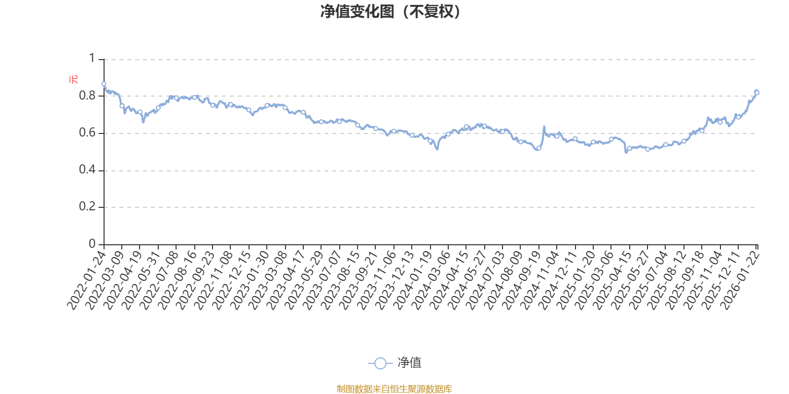 通过所选区间该基金净值增长率分位图,可以观察该基金与同类基金业绩比较情况。图为坐标原点到区间内某时点的净值增长率在同类基金中的分位数。