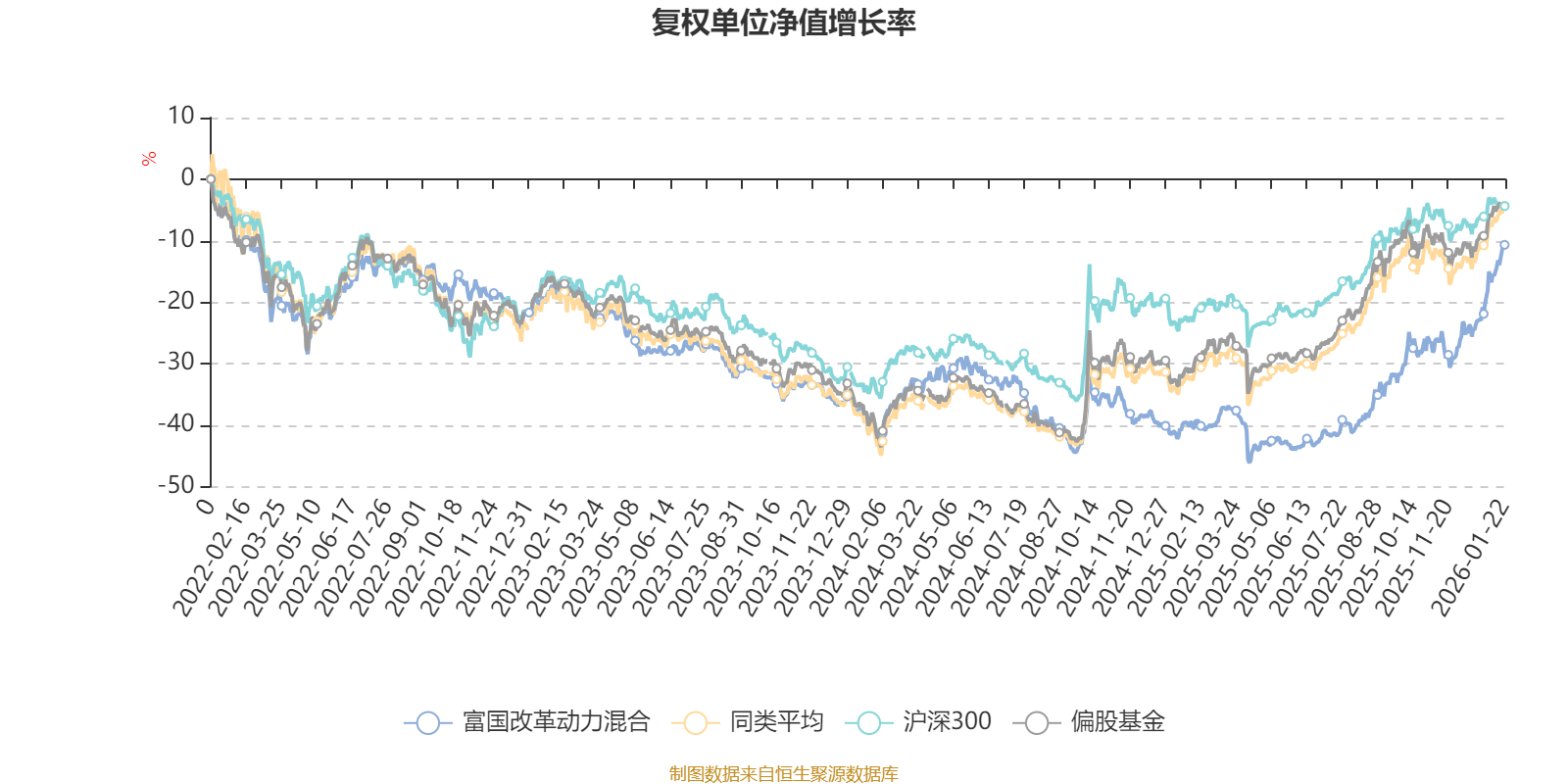 截至1月22日,富国改革动力混合近三个月复权单位净值增长率为24.66%,位于同类可比基金6/265;近半年复权单位净值增长率为46.77%,位于同类可比基金31/265;近一年复权单位净值增长率为48.37%,位于同类可比基金84/265;近三年复权单位净值增长率为9.79%,位于同类可比基金176/256。