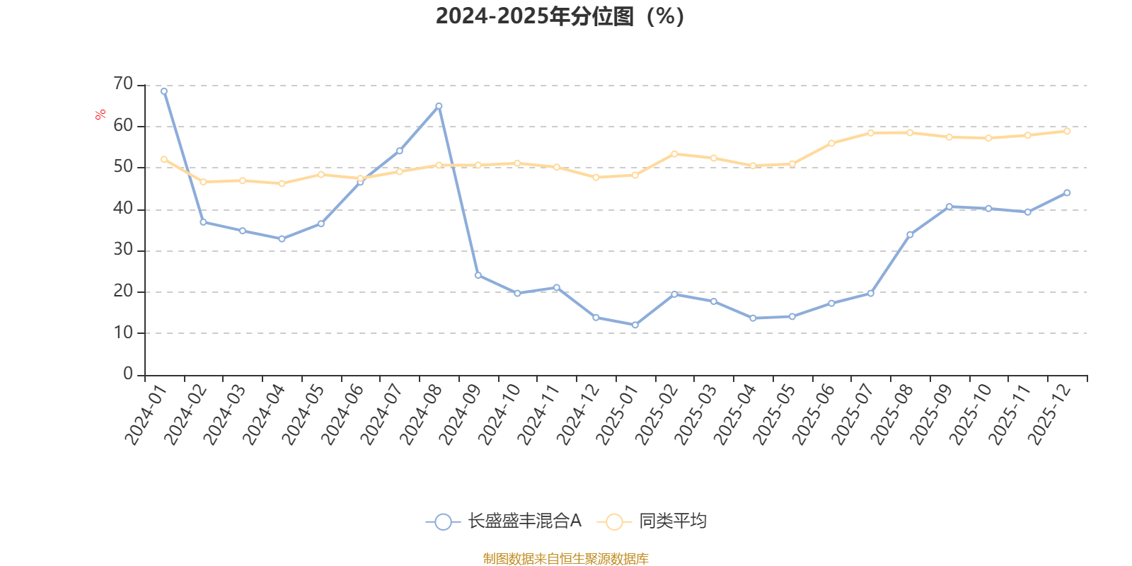 通过所选区间该基金净值增长率分位图,可以观察该基金与同类基金业绩比较情况。图为坐标原点到区间内某时点的净值增长率在同类基金中的分位数。