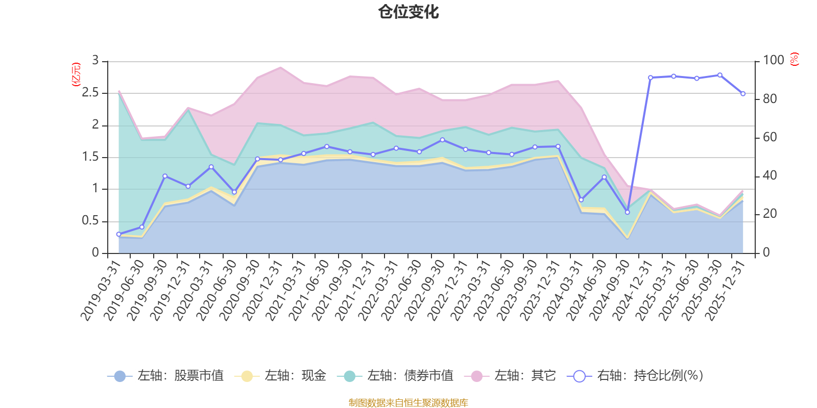 据定期报告数据统计,近三年平均股票仓位为62.85%,同类平均为72.57%。2025年三季度末基金达到92.8%的最高仓位,2019年一季度末最低,为9.89%。