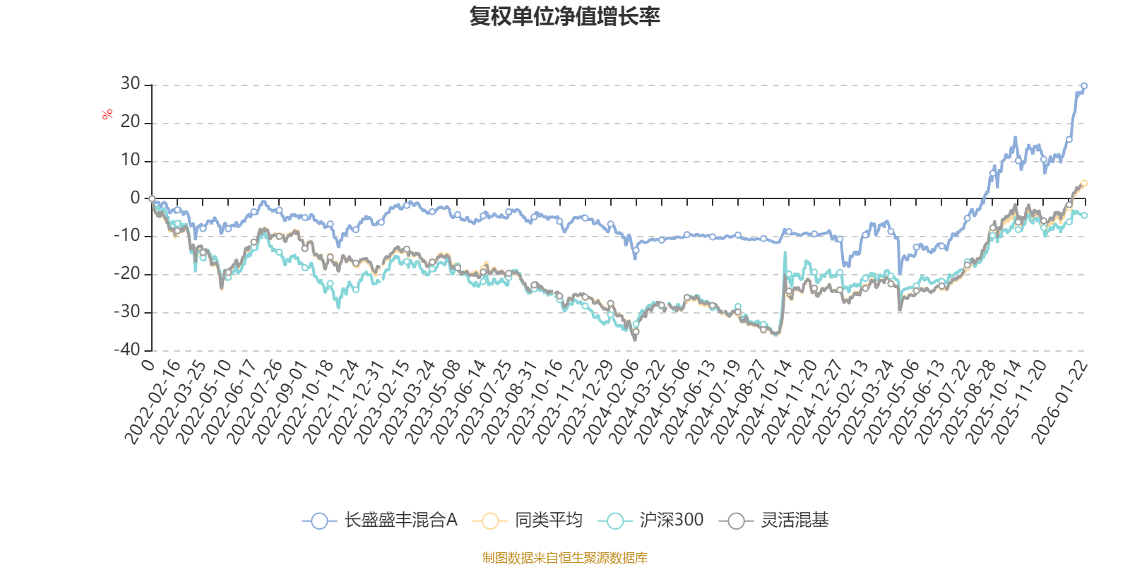 截至1月22日,长盛盛丰混合A近三个月复权单位净值增长率为18.74%,位于同类可比基金166/1286;近半年复权单位净值增长率为36.76%,位于同类可比基金309/1286;近一年复权单位净值增长率为51.40%,位于同类可比基金317/1286;近三年复权单位净值增长率为32.32%,位于同类可比基金356/1286。
