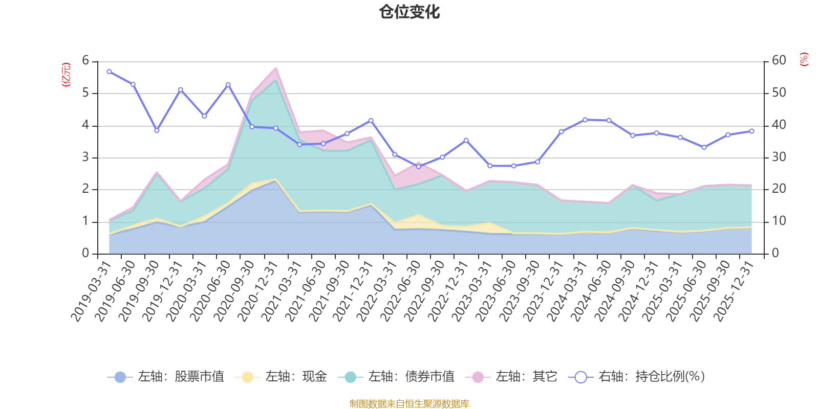 据定期报告数据统计,近三年平均股票仓位为35.37%,同类平均为72.57%。2019年一季度末基金达到56.82%的最高仓位,2022年上半年末最低,为27.18%。