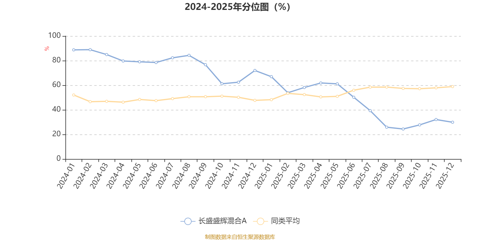 通过所选区间该基金净值增长率分位图,可以观察该基金与同类基金业绩比较情况。图为坐标原点到区间内某时点的净值增长率在同类基金中的分位数。