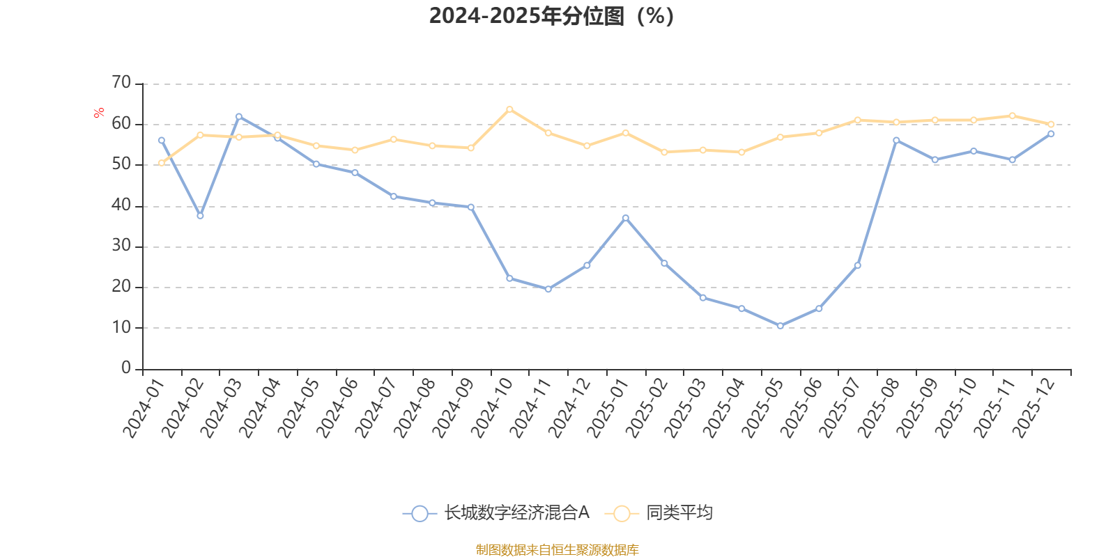 通过所选区间该基金净值增长率分位图,可以观察该基金与同类基金业绩比较情况。图为坐标原点到区间内某时点的净值增长率在同类基金中的分位数。