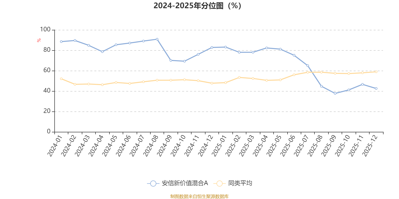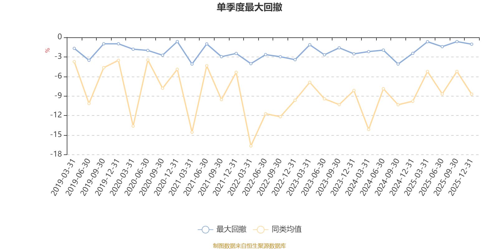 通过所选区间该基金净值增长率分位图,可以观察该基金与同类基金业绩比较情况。图为坐标原点到区间内某时点的净值增长率在同类基金中的分位数。