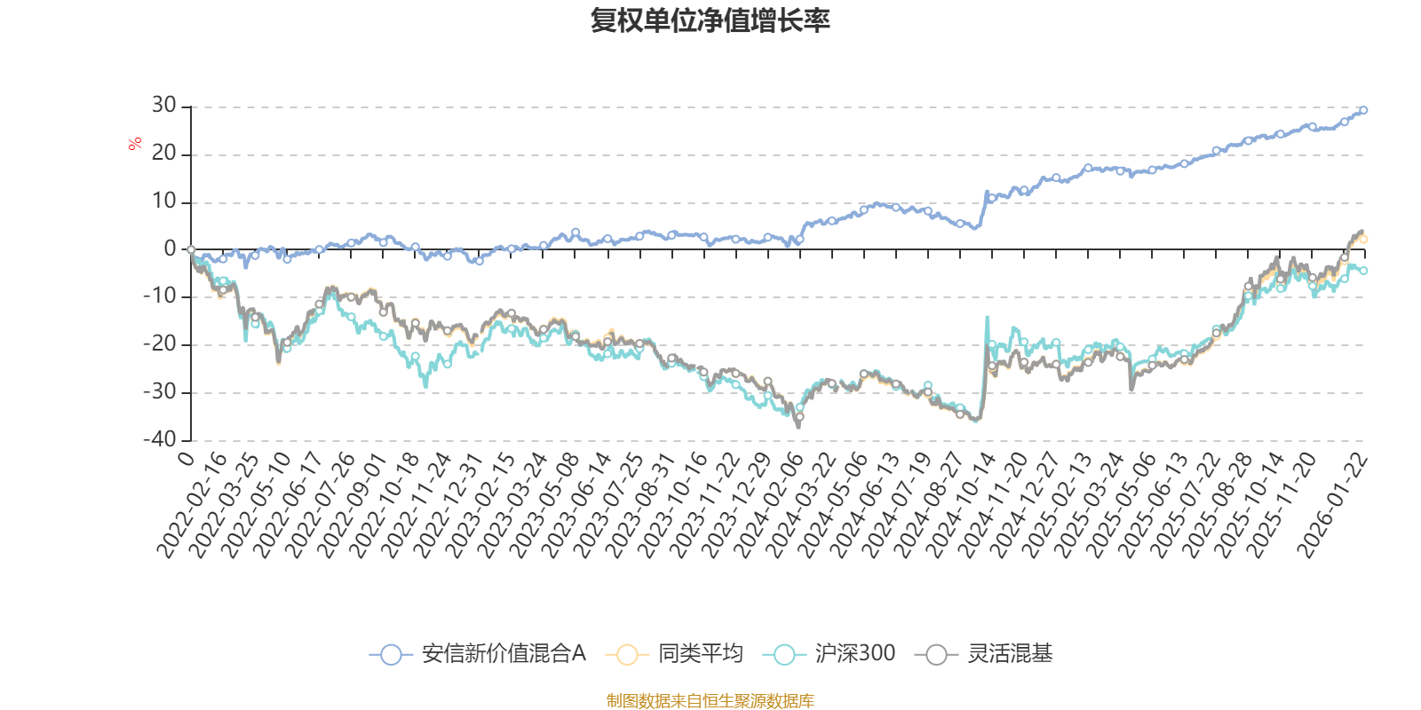 截至1月22日,安信新价值混合A近三个月复权单位净值增长率为4.11%,位于同类可比基金890/1286;近半年复权单位净值增长率为7.00%,位于同类可比基金1019/1286;近一年复权单位净值增长率为12.18%,位于同类可比基金1050/1286;近三年复权单位净值增长率为28.64%,位于同类可比基金397/1286。
