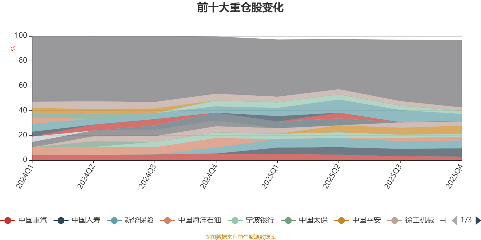 截至2025年四季度末,基金十大重仓股分别是中国平安、中国人寿、新华保险、紫金矿业、徐工机械、中国重汽、三一重工、中国海洋石油、宁波银行、中国黄金国际。