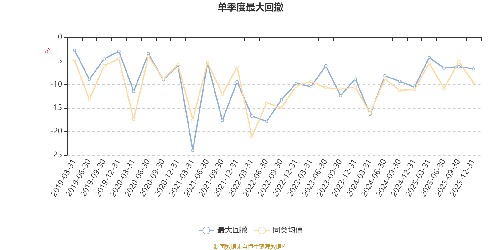通过所选区间该基金净值增长率分位图,可以观察该基金与同类基金业绩比较情况。图为坐标原点到区间内某时点的净值增长率在同类基金中的分位数。
