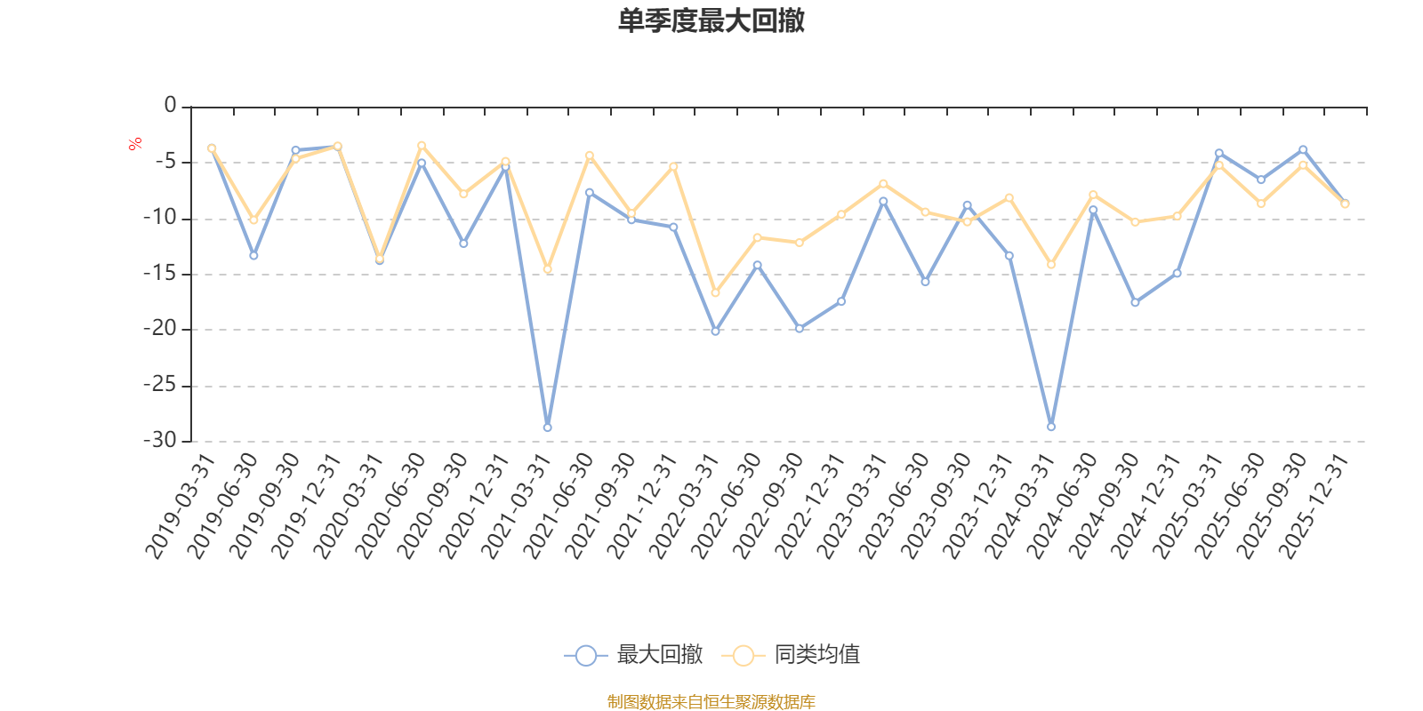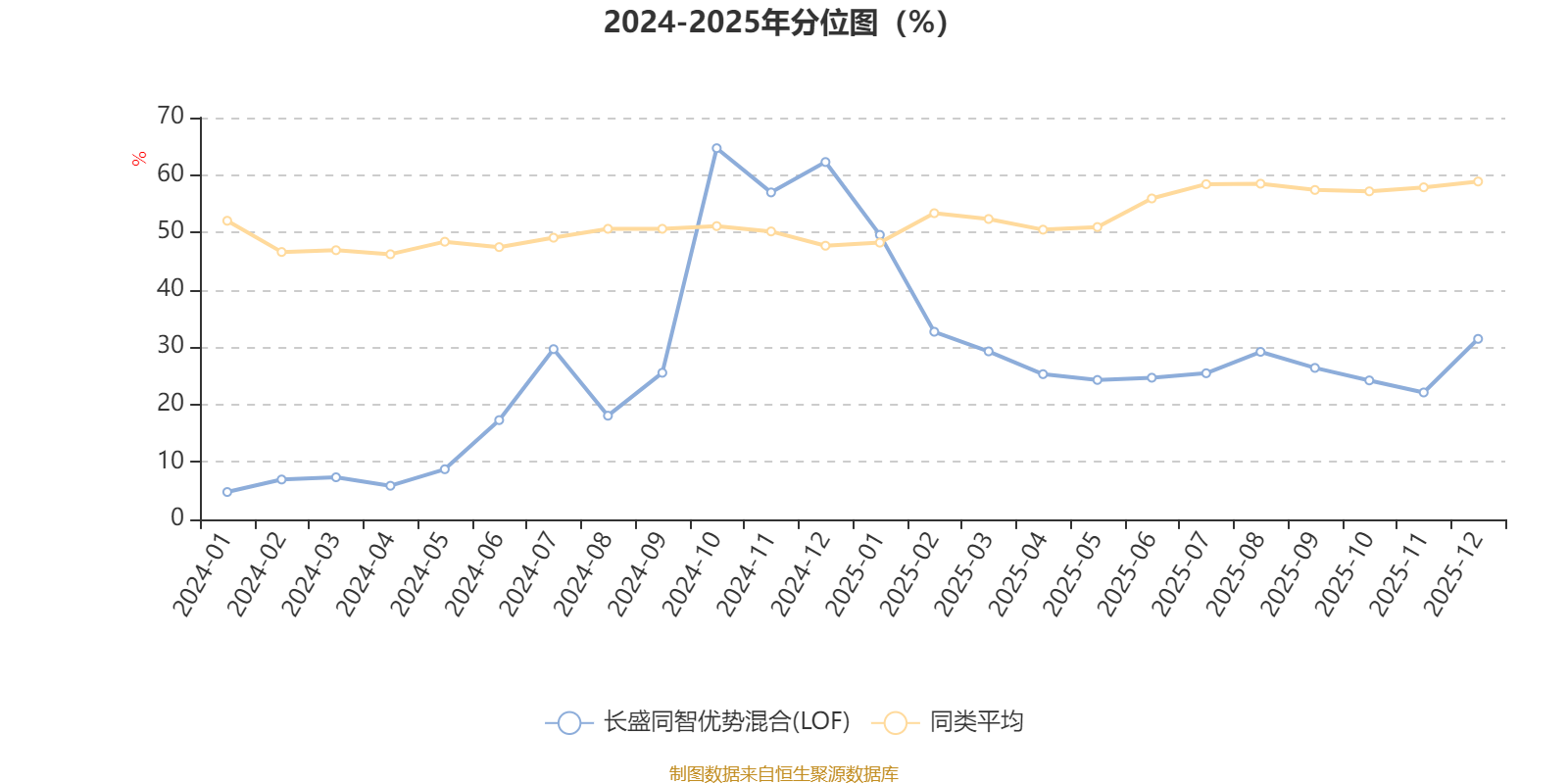 通过所选区间该基金净值增长率分位图,可以观察该基金与同类基金业绩比较情况。图为坐标原点到区间内某时点的净值增长率在同类基金中的分位数。