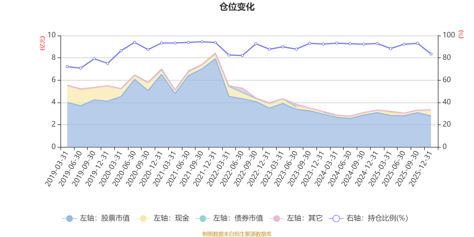 据定期报告数据统计,近三年平均股票仓位为90.95%,同类平均为72.57%。2021年三季度末基金达到94.4%的最高仓位,2019年上半年末最低,为70.78%。