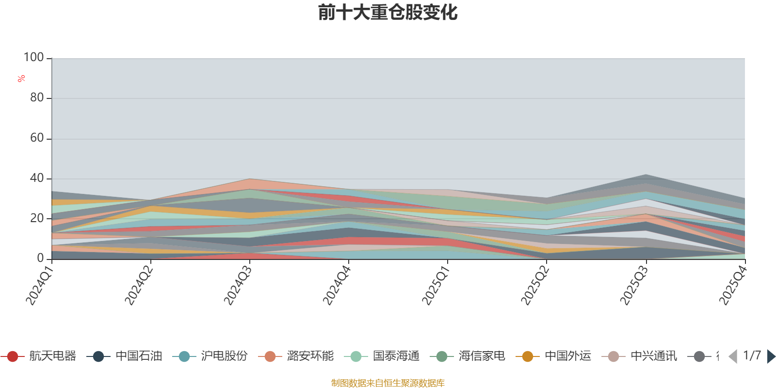 截至2025年四季度末,基金十大重仓股分别是宁德时代、长电科技、中国平安、深南电路、胜宏科技、工业富联、中国海油、兆易创新、春秋航空、国泰海通。