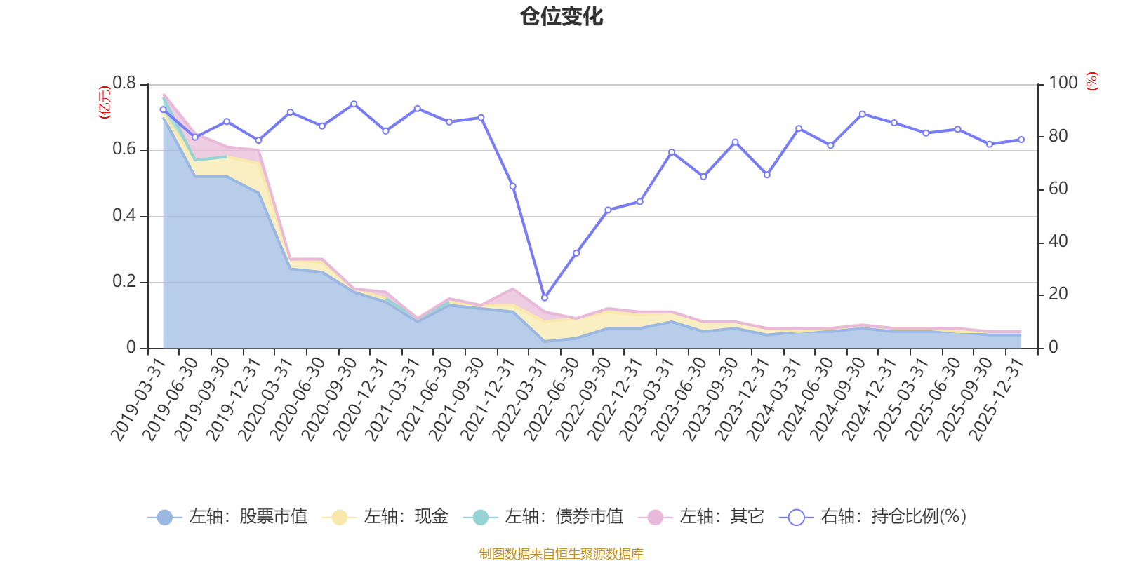 据定期报告数据统计,近三年平均股票仓位为78.14%,同类平均为72.57%。2020年三季度末基金达到92.49%的最高仓位,2022年一季度末最低,为19.09%。