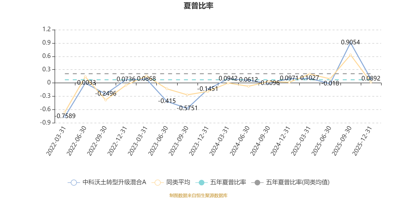 截至12月31日,基金近三年夏普比率为0.5688,位于同类可比基金585/1275。