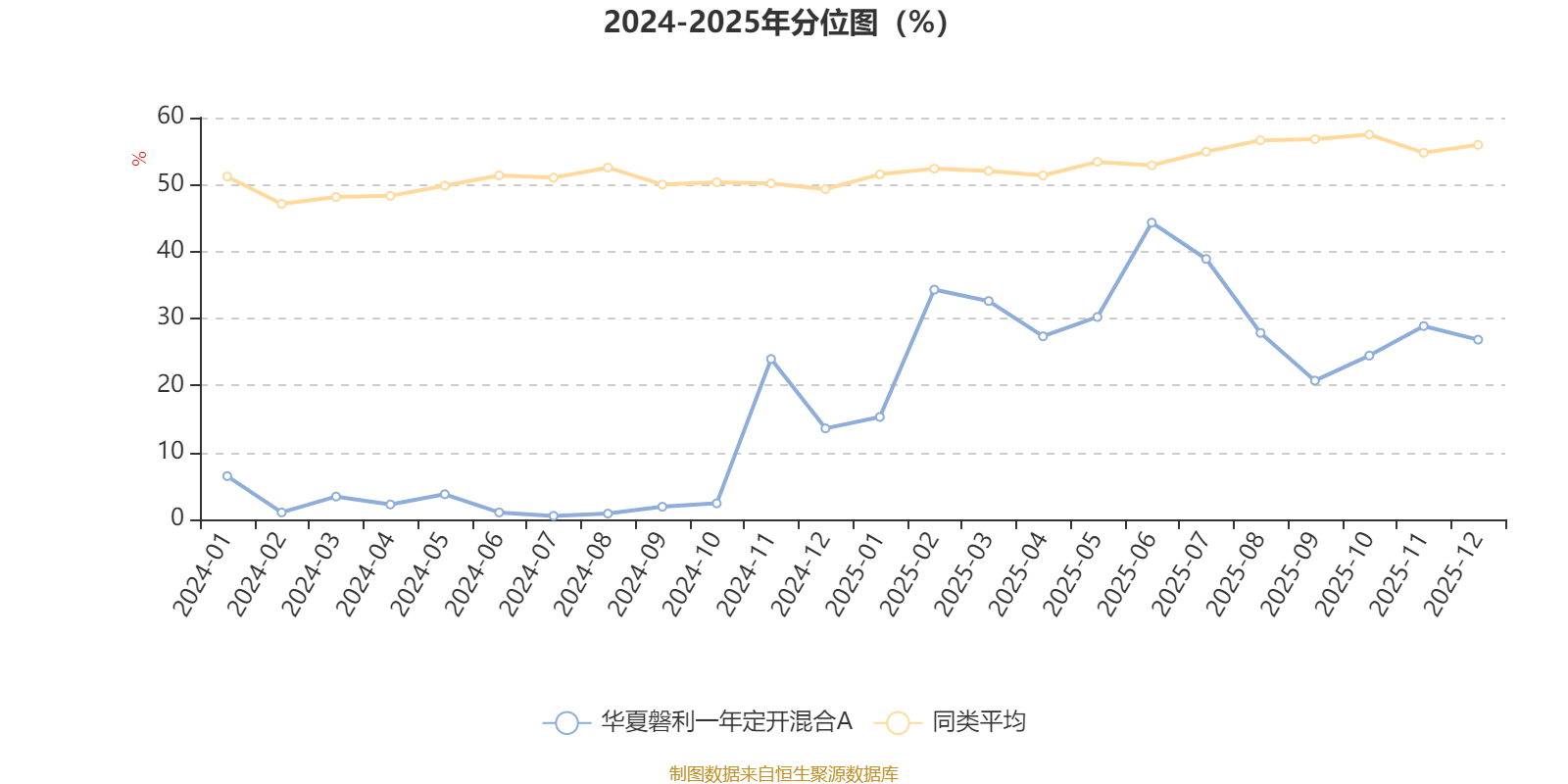 通过所选区间该基金净值增长率分位图,可以观察该基金与同类基金业绩比较情况。图为坐标原点到区间内某时点的净值增长率在同类基金中的分位数。