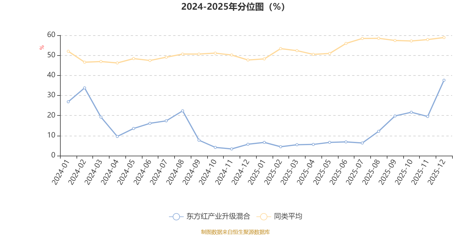 通过所选区间该基金净值增长率分位图,可以观察该基金与同类基金业绩比较情况。图为坐标原点到区间内某时点的净值增长率在同类基金中的分位数。