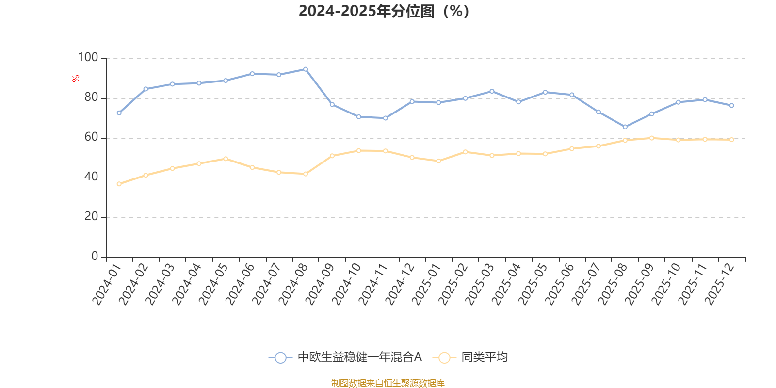 通过所选区间该基金净值增长率分位图,可以观察该基金与同类基金业绩比较情况。图为坐标原点到区间内某时点的净值增长率在同类基金中的分位数。