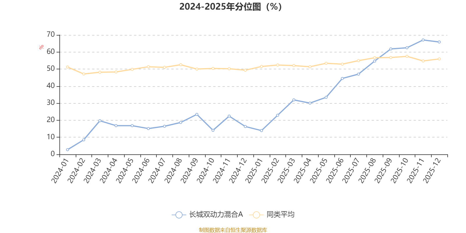 通过所选区间该基金净值增长率分位图,可以观察该基金与同类基金业绩比较情况。图为坐标原点到区间内某时点的净值增长率在同类基金中的分位数。