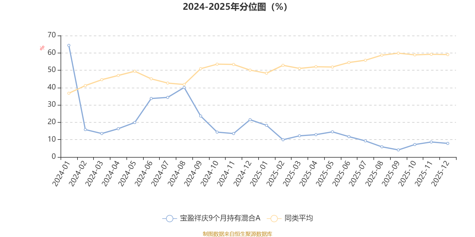 通过所选区间该基金净值增长率分位图,可以观察该基金与同类基金业绩比较情况。图为坐标原点到区间内某时点的净值增长率在同类基金中的分位数。