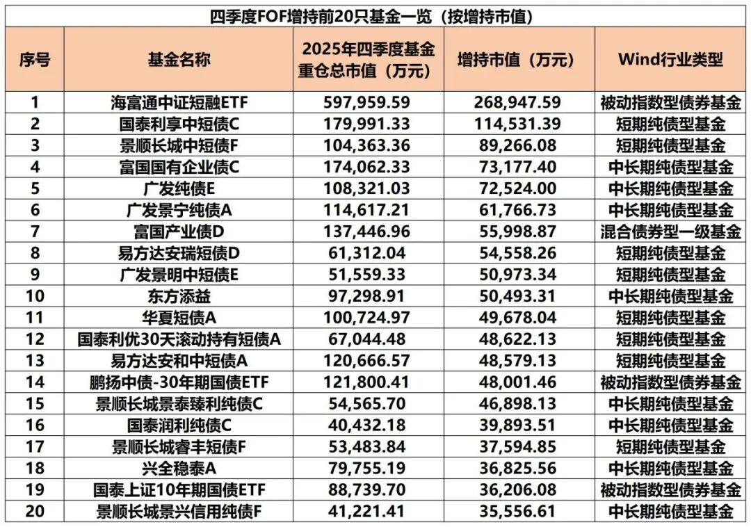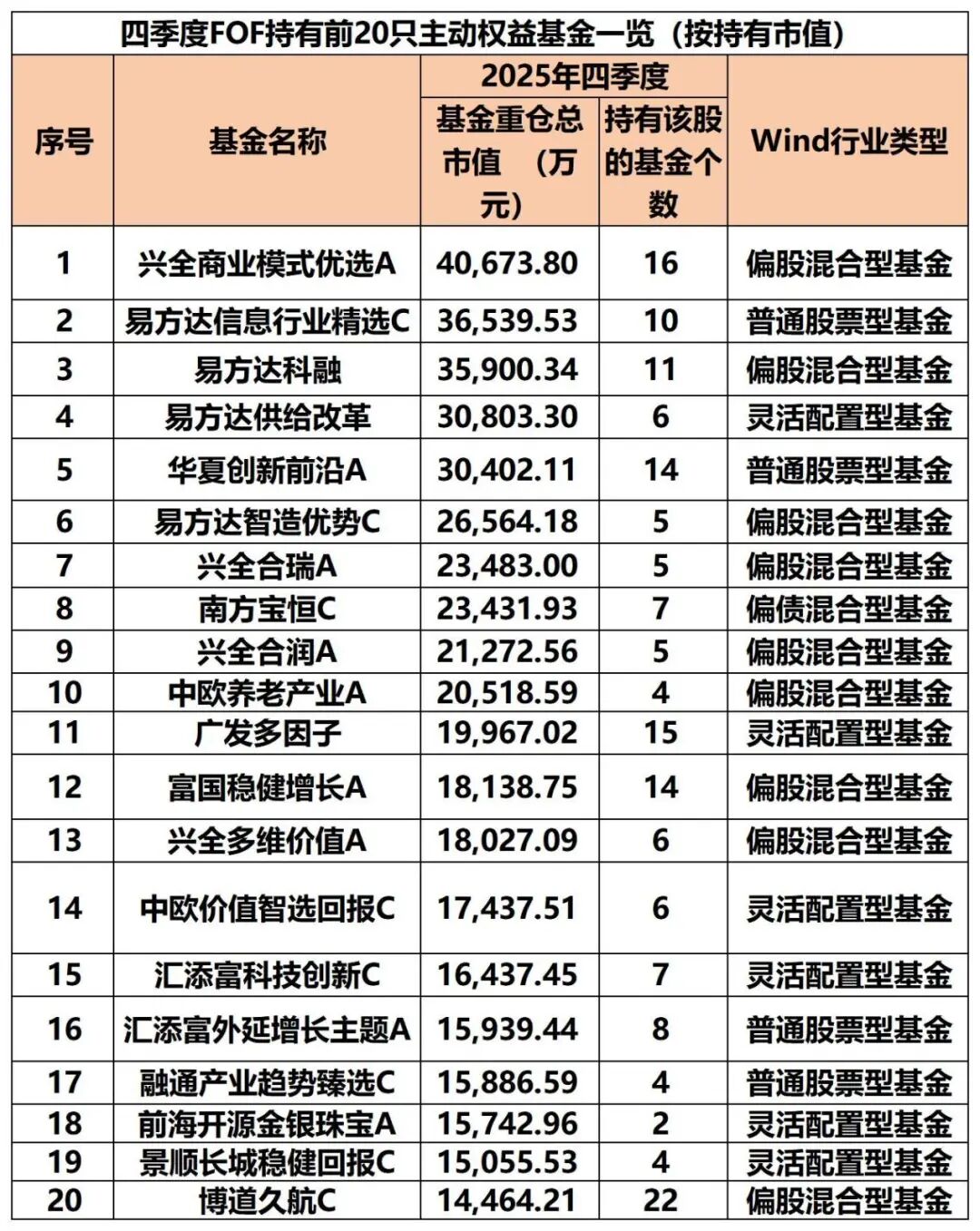 随着基金2025年四季报披露完毕,有着“专业买手”之称的公募FOF最新重仓基金情况浮出水面。