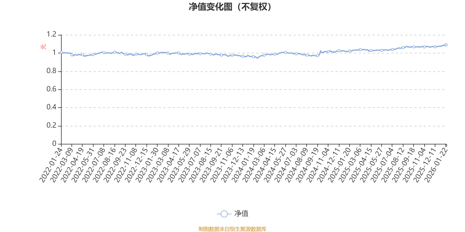 该基金属于偏债混合型基金。截至1月22日,单位净值为1.089元。基金经理是尹润泉和杨荔媛。