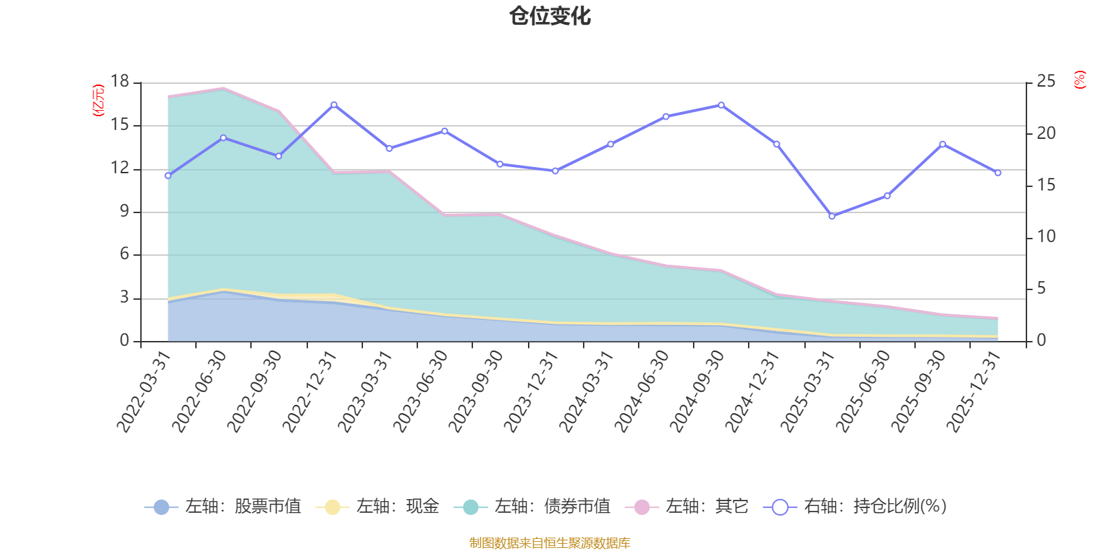 据定期报告数据统计,近三年平均股票仓位为18.05%,同类平均为19.2%。2022年末基金达到22.85%的最高仓位,2025年一季度末最低,为12.09%。
