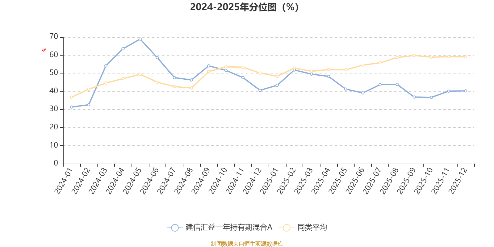 通过所选区间该基金净值增长率分位图,可以观察该基金与同类基金业绩比较情况。图为坐标原点到区间内某时点的净值增长率在同类基金中的分位数。