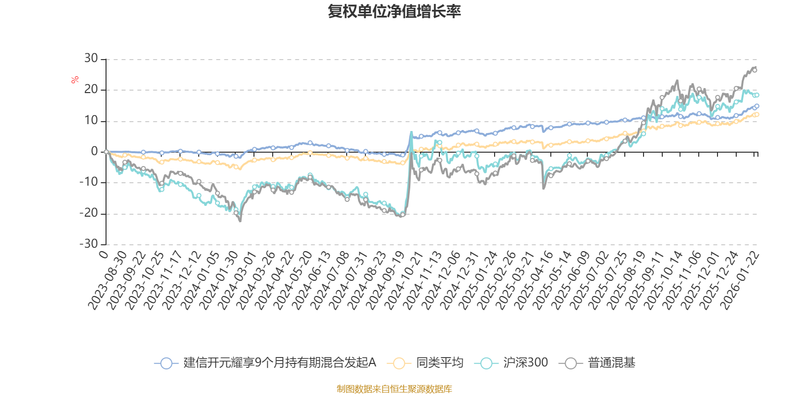 截至1月22日,建信开元耀享9个月持有期混合发起A近三个月复权单位净值增长率为3.22%,位于同类可比基金168/629;近半年复权单位净值增长率为4.00%,位于同类可比基金344/629;近一年复权单位净值增长率为8.55%,位于同类可比基金267/626。