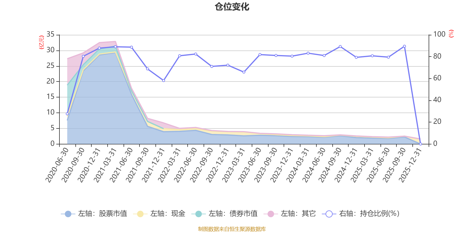 据定期报告数据统计,近三年平均股票仓位为74.33%,同类平均为84.04%。2025年三季度末基金达到89.55%的最高仓位,2020年上半年末最低,为27.65%。