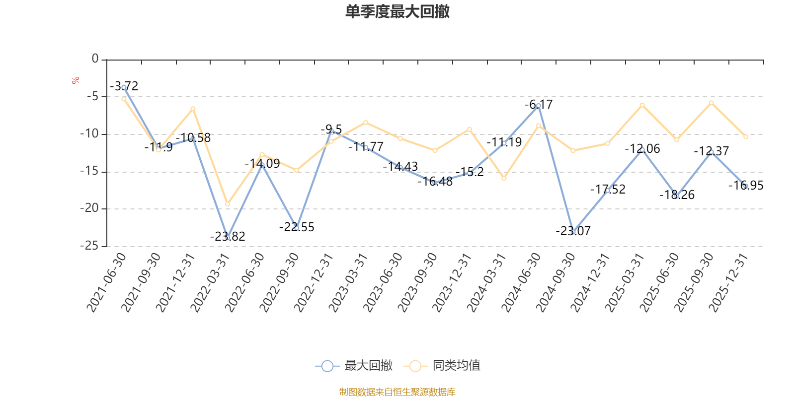 截至1月23日,基金近三年最大回撤为43.75%,同类可比基金排名296/381。单季度最大回撤出现在2022年一季度,为23.82%。
