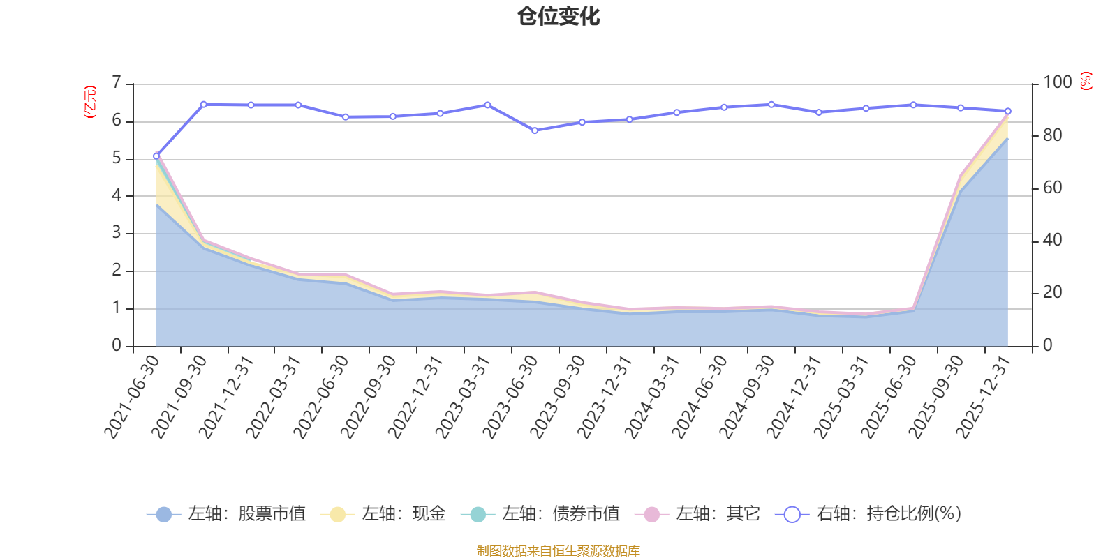 据定期报告数据统计,近三年平均股票仓位为89.17%,同类平均为84.04%。2021年三季度末基金达到92.12%的最高仓位,2021年上半年末最低,为72.45%。