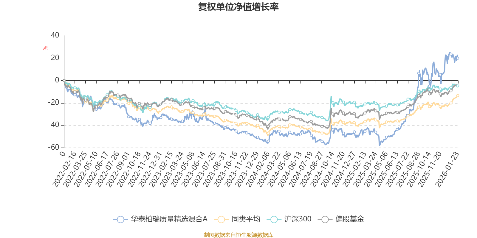 截至1月23日,华泰柏瑞质量精选混合A近三个月复权单位净值增长率为15.96%,位于同类可比基金179/689;近半年复权单位净值增长率为73.57%,位于同类可比基金12/689;近一年复权单位净值增长率为116.91%,位于同类可比基金7/674;近三年复权单位净值增长率为73.24%,位于同类可比基金14/396。
