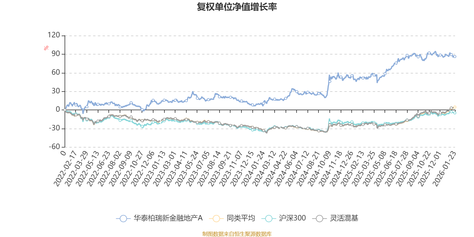 截至1月23日,华泰柏瑞新金融地产A近三个月复权单位净值增长率为-3.37%,位于同类可比基金1258/1286;近半年复权单位净值增长率为0.20%,位于同类可比基金1223/1286;近一年复权单位净值增长率为23.32%,位于同类可比基金874/1286;近三年复权单位净值增长率为59.84%,位于同类可比基金133/1286。