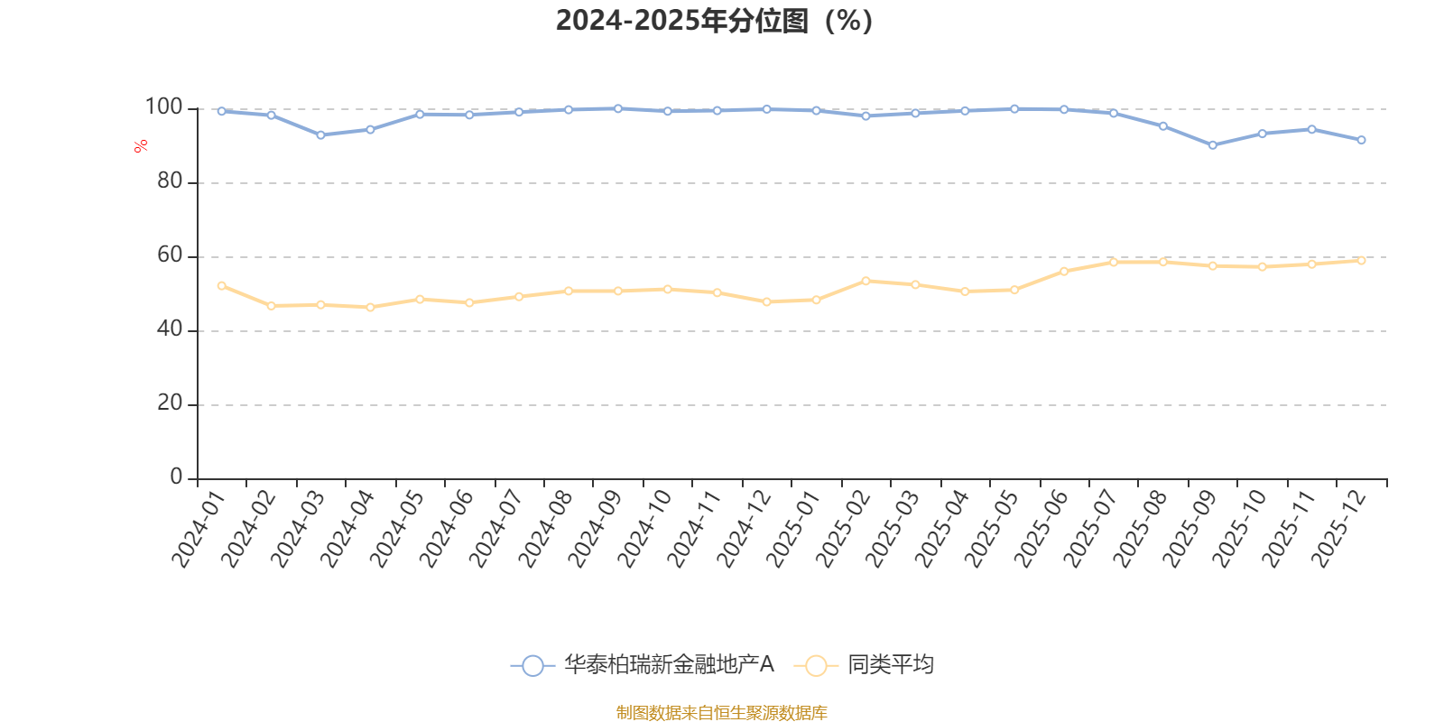 通过所选区间该基金净值增长率分位图,可以观察该基金与同类基金业绩比较情况。图为坐标原点到区间内某时点的净值增长率在同类基金中的分位数。