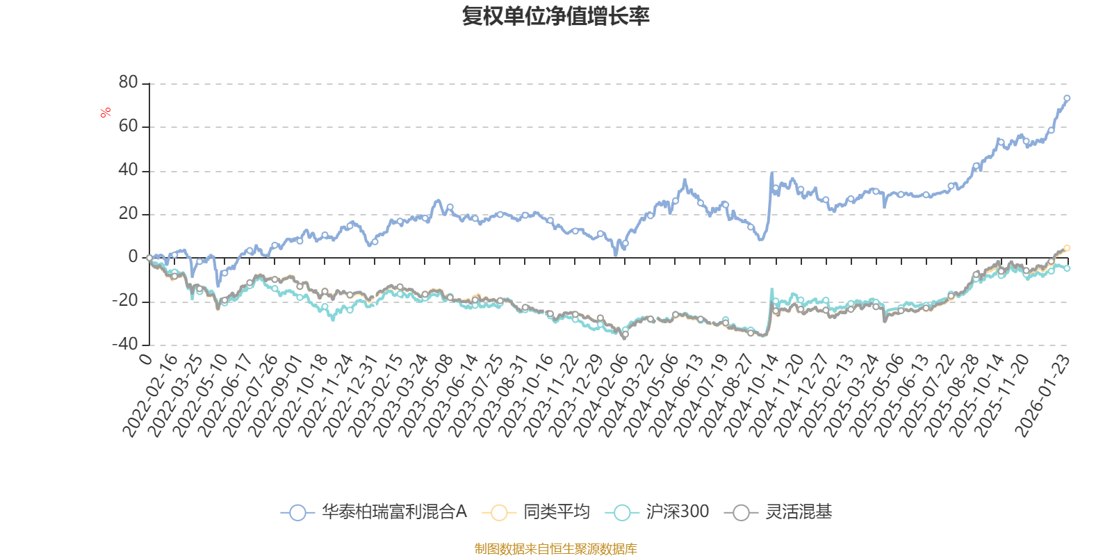 截至1月23日,华泰柏瑞富利混合A近三个月复权单位净值增长率为15.58%,位于同类可比基金338/1286;近半年复权单位净值增长率为30.46%,位于同类可比基金457/1286;近一年复权单位净值增长率为40.26%,位于同类可比基金539/1286;近三年复权单位净值增长率为51.57%,位于同类可比基金184/1286。
