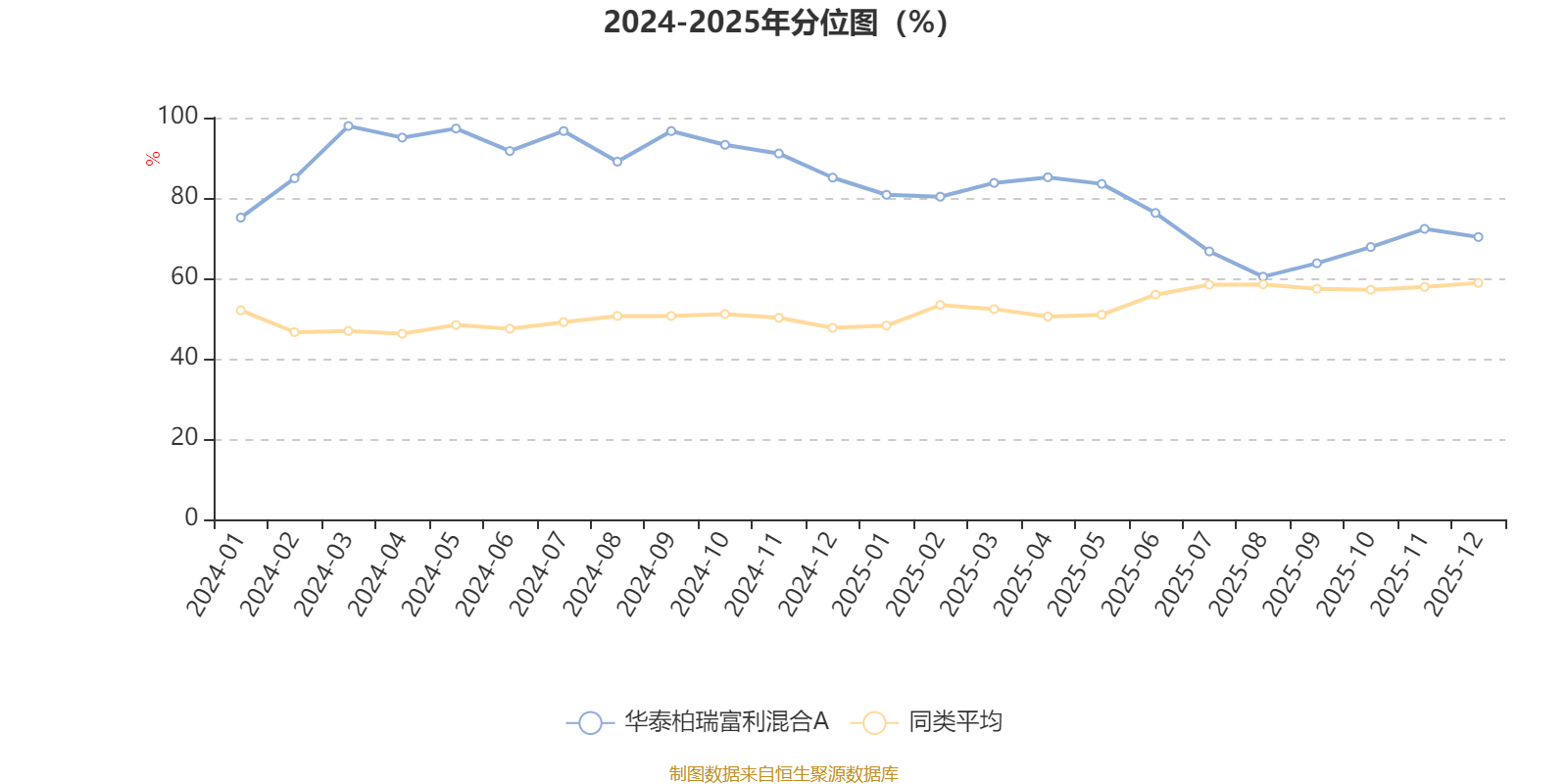 通过所选区间该基金净值增长率分位图,可以观察该基金与同类基金业绩比较情况。图为坐标原点到区间内某时点的净值增长率在同类基金中的分位数。