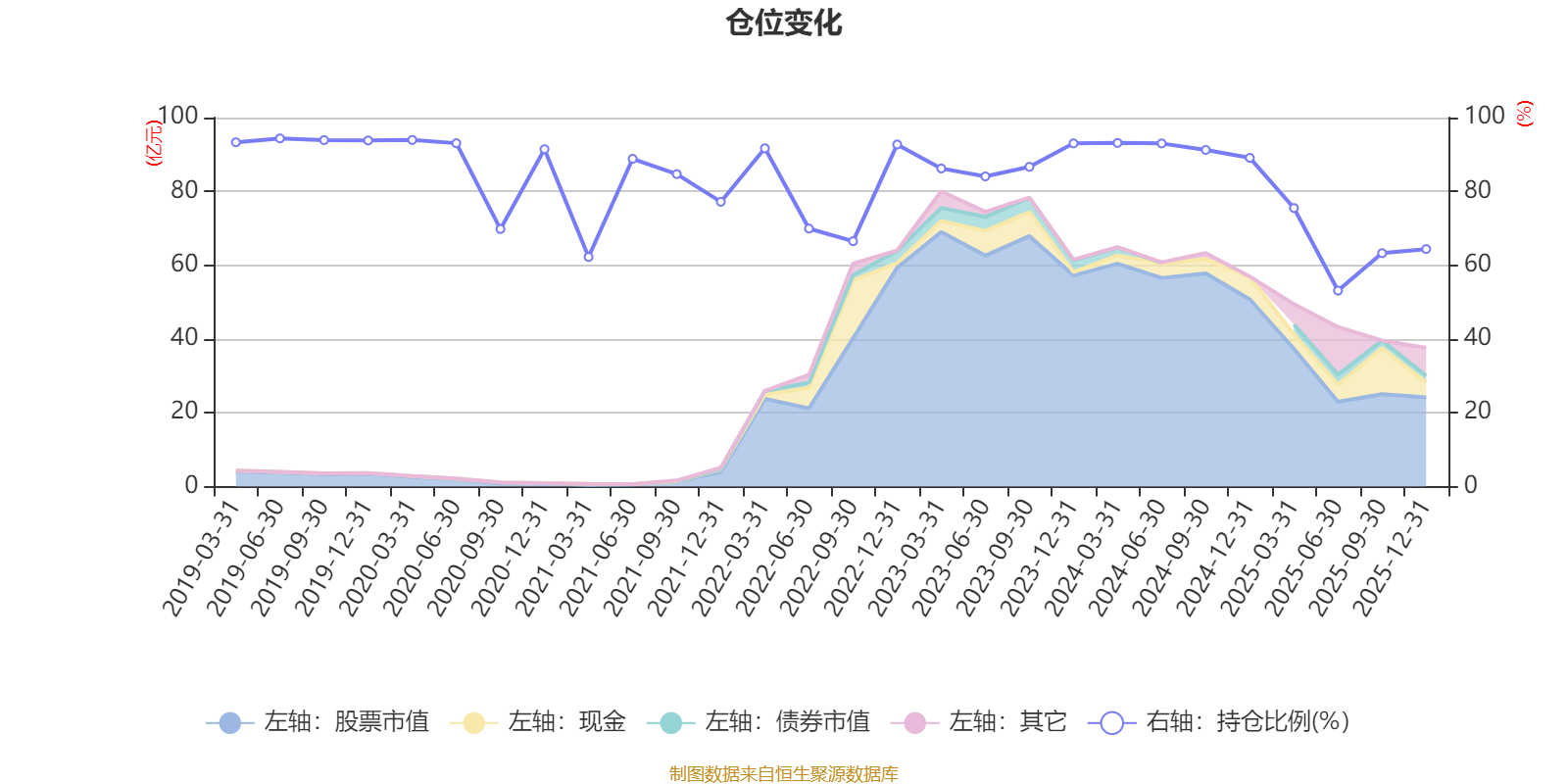 据定期报告数据统计,近三年平均股票仓位为81.06%,同类平均为72.57%。2019年上半年末基金达到94.37%的最高仓位,2025年上半年末最低,为53.11%。