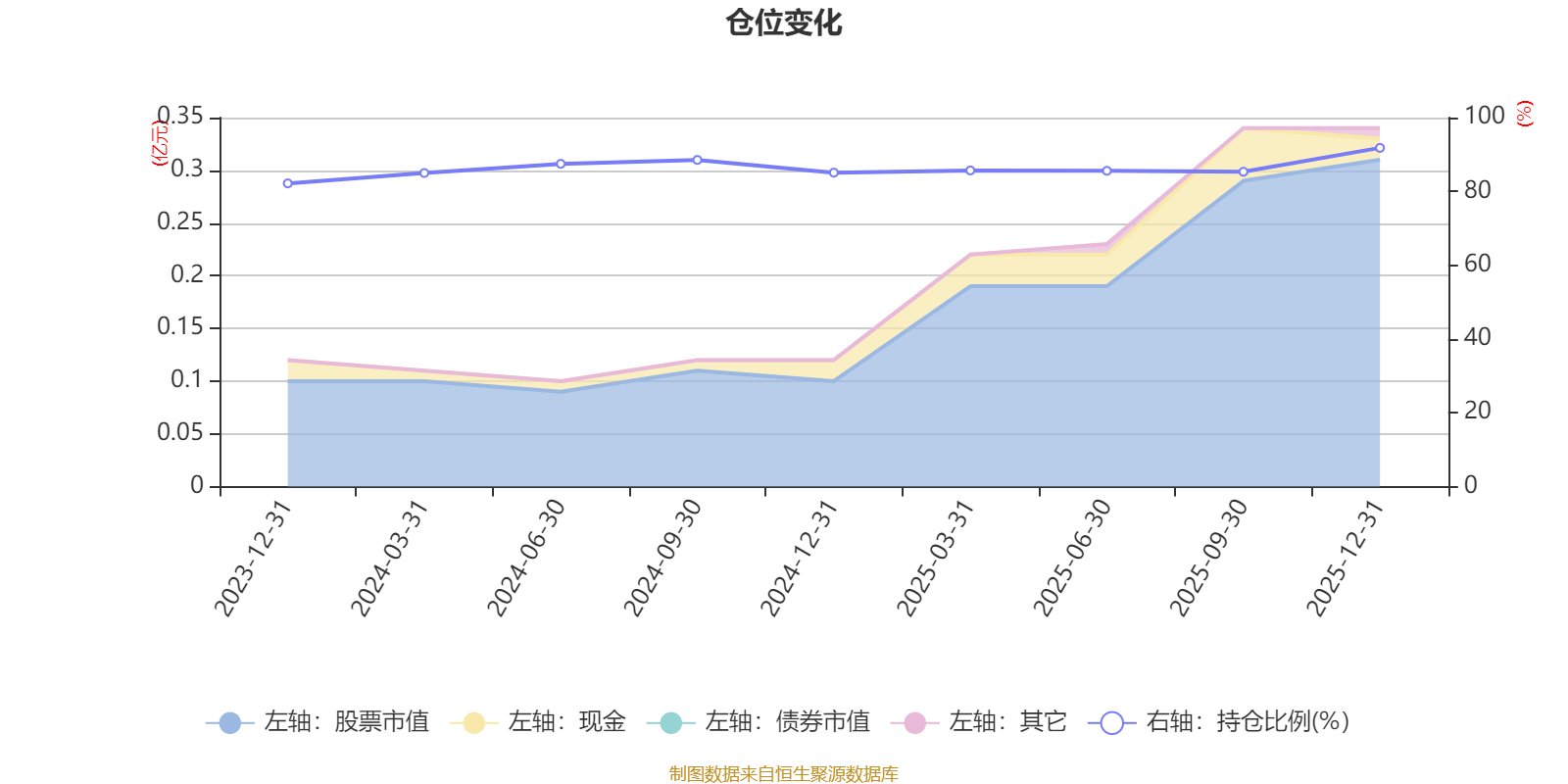 据定期报告数据统计,成立以来平均股票仓位为86.29%,同类平均为84.04%。2025年末基金达到91.8%的最高仓位,2023年末最低,为82.17%。