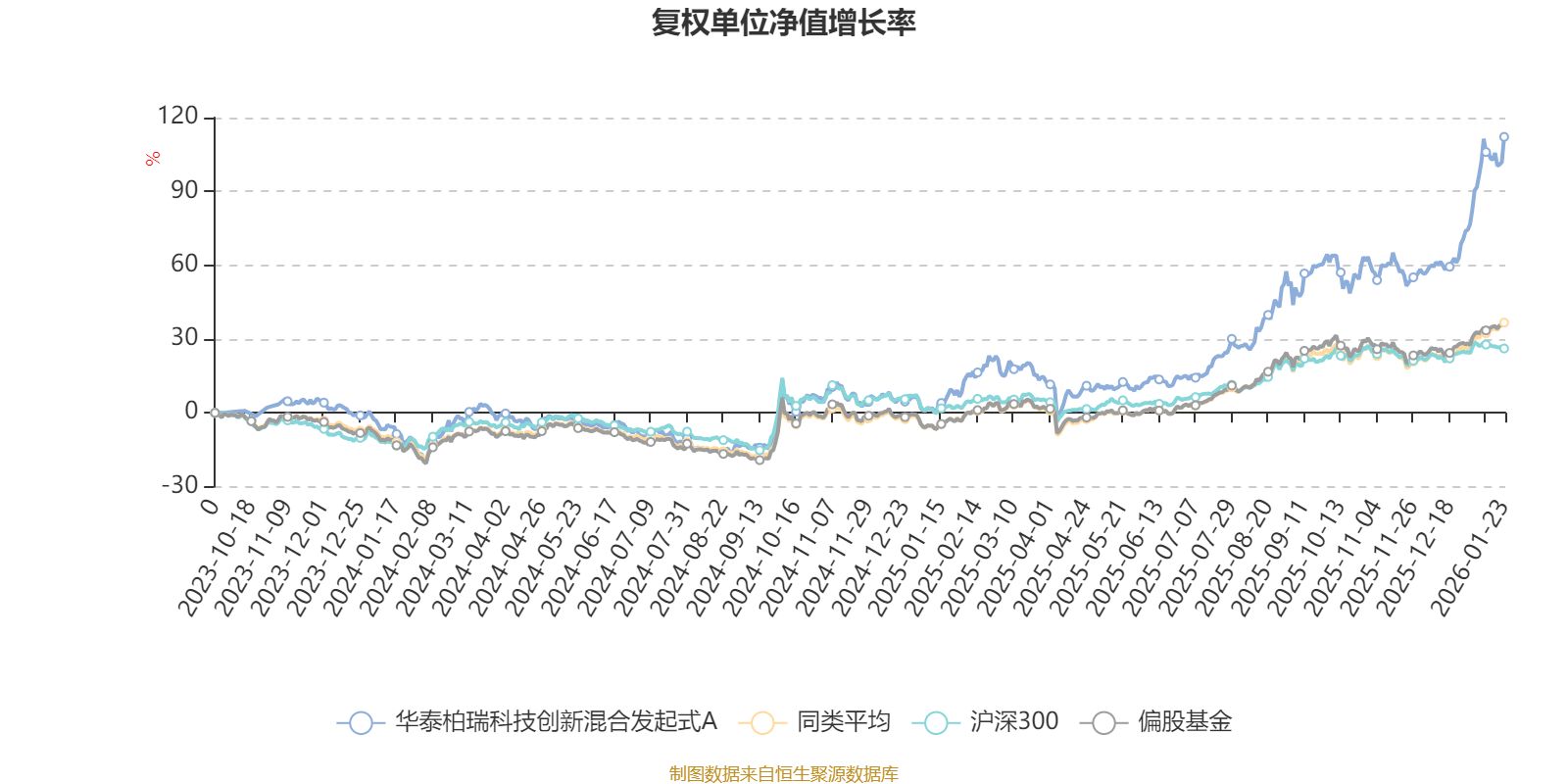 截至1月23日,华泰柏瑞科技创新混合发起式A近三个月复权单位净值增长率为37.46%,位于同类可比基金13/689;近半年复权单位净值增长率为72.36%,位于同类可比基金13/689;近一年复权单位净值增长率为97.80%,位于同类可比基金17/674。