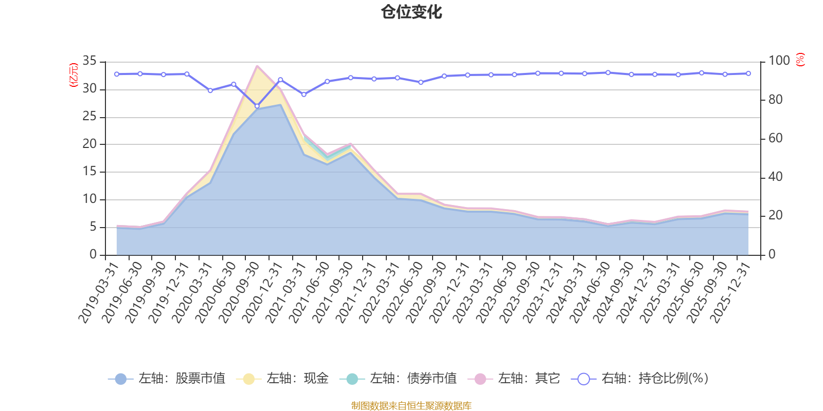 据定期报告数据统计,近三年平均股票仓位为93.7%,同类平均为86.12%。2024年上半年末基金达到94.35%的最高仓位,2020年三季度末最低,为77.02%。